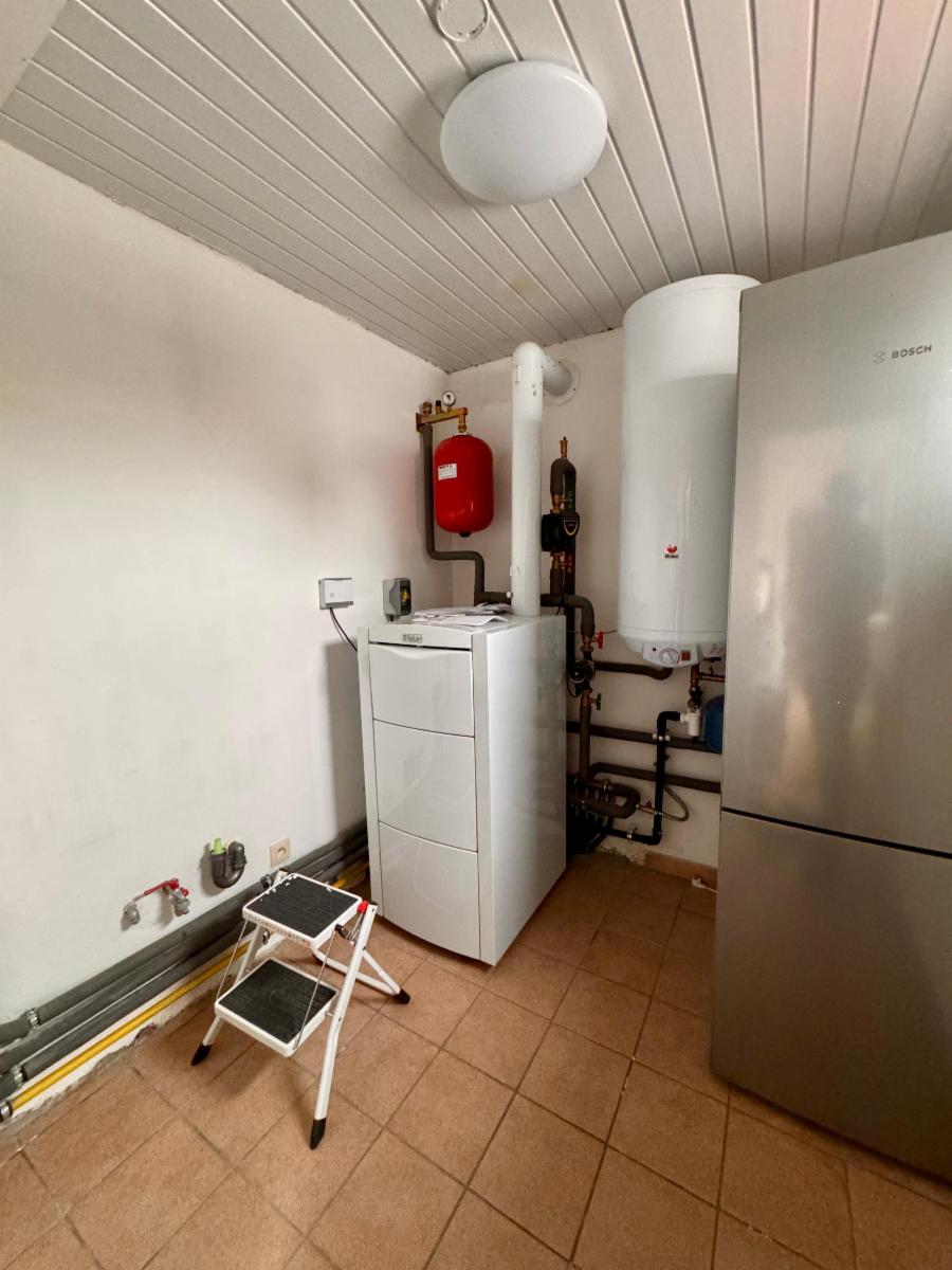 Le rez- de chaussée se compose d'un hall d’entrée, séjour/salle à manger, cuisine équipée (four, taques vitrocéramiques, lave-vaisselle), buanderie avec nouvelle chaudière Vaillant + boiler, WC séparé, bureau ou chambre avec placards intégrés, accès à l'extérieur orienté sud avec chalet idéals pour vos moments de détente ou vos repas en extérieur.